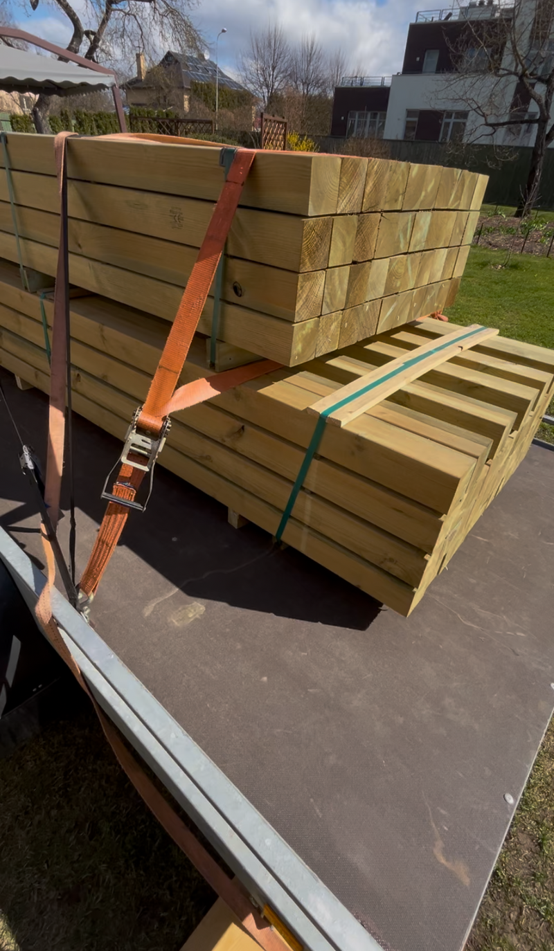 - Pergolas vai nojumes karkasa izgatavošanai mēs izmantojam tikai sertificētus C24 spiedien-apstrādātus (impregnētus) materiālus.